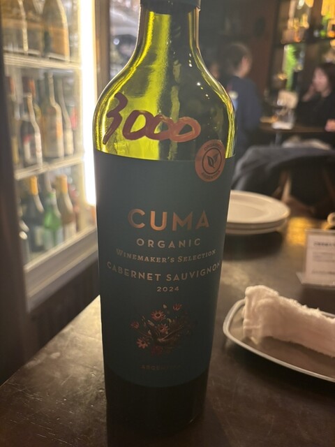 カニ食べ放題の帰り、満腹だけどもう少しアルコールを楽しみたいと駅に向かう途中、こちらのお店に立ち寄りました。ワインはボトルの値段も良心的な金額からいろいろと取り揃えてあり、おつまみにチーズのマリネとチョコレートと洋梨のタルトを頼みましたが、チーズのマリネはものすごく濃厚なチーズでワインにぴったり、タルトはお店で手作りされているのかな?甘すぎず、美味しかったです。