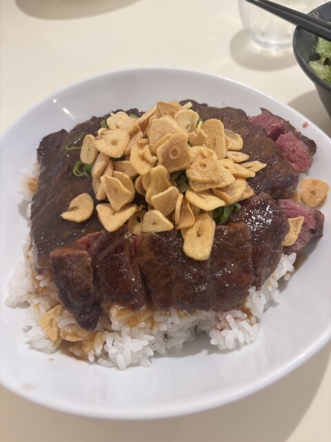 お肉も食べやすいように切ってあり今までで一番美味しいステーキ丼でした!