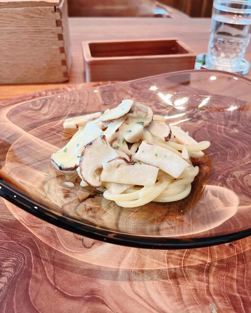 松茸を贅沢に使ったパスタで、松茸の中でも『こめずか松茸』で標高2000m以上の所でしか取れない希少な松茸