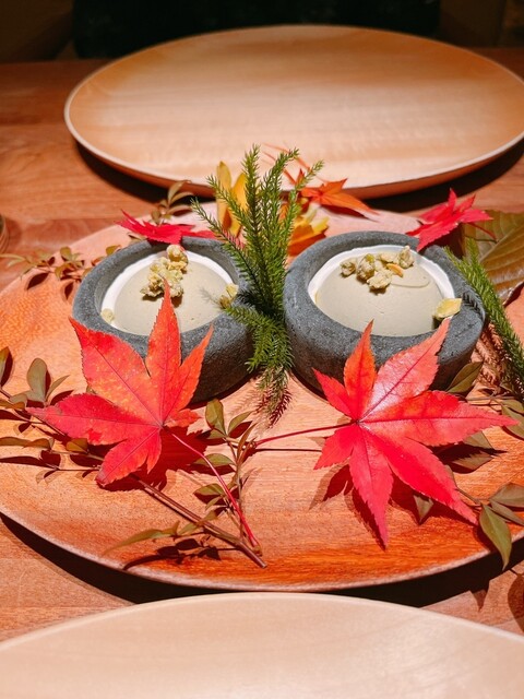 今回のテーマは、秋の稲穂や落ち葉を燃やし『焦げた匂い』がする山間に煙が立ち込める風景を想像する季節を味わうレストラン☺️