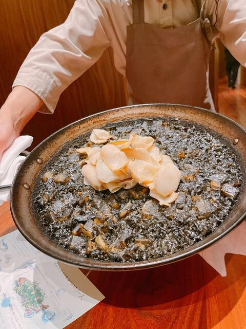 アワビとイカスミのパエリア