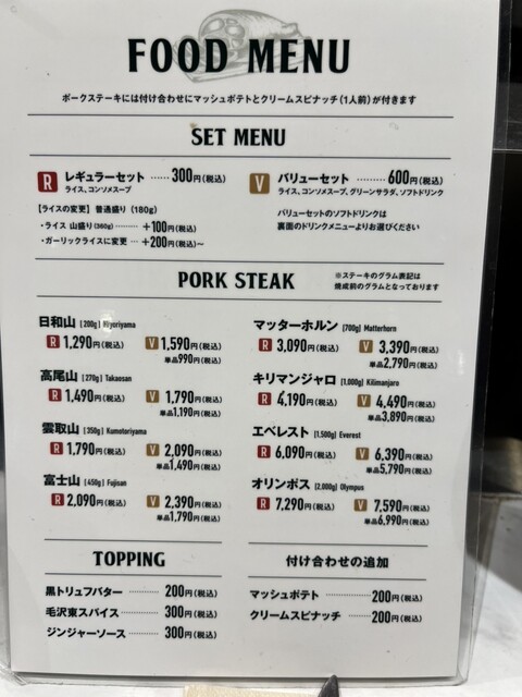 ポークステーキの厚さ(重さ)が色々あって、かなり分厚いのを食べている人も居て…、結局は2番目の高尾山にしました。