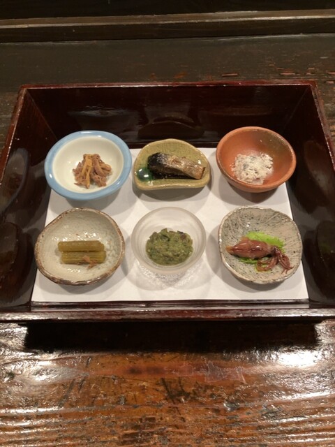 箱膳(牛しぐれ/ニシン煮付け/卯の花/フキ/蕨たたき/蛍烏賊)