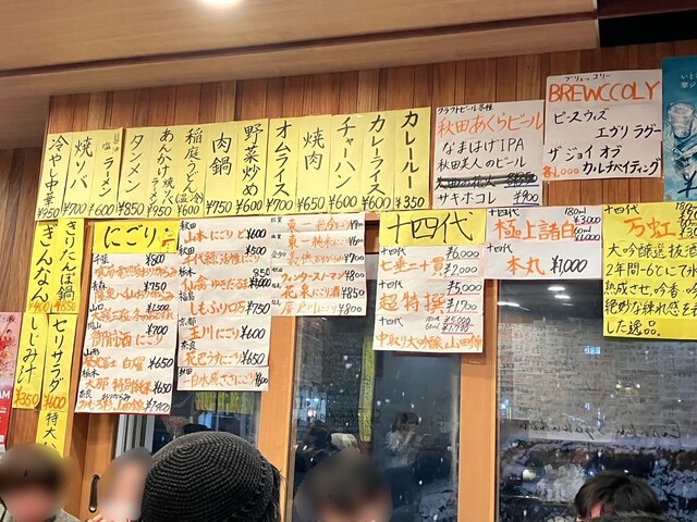 秋田(おらえ)の酒も県外(あだえ)の酒も迷うくらいのラインナップ。レベル高い料理も豊富。