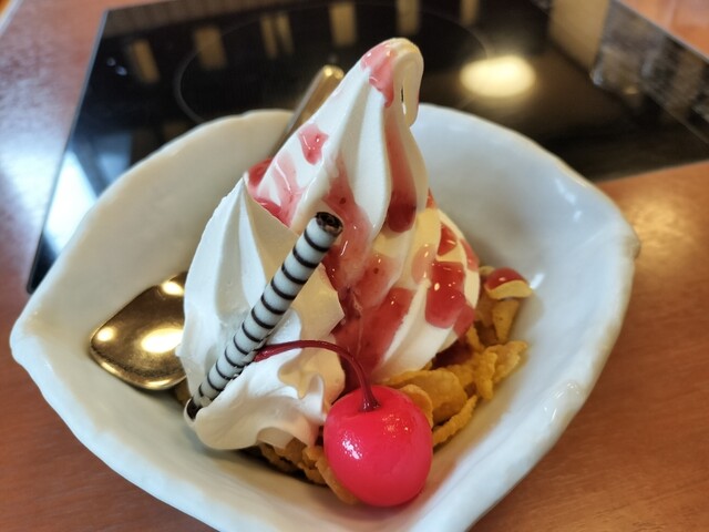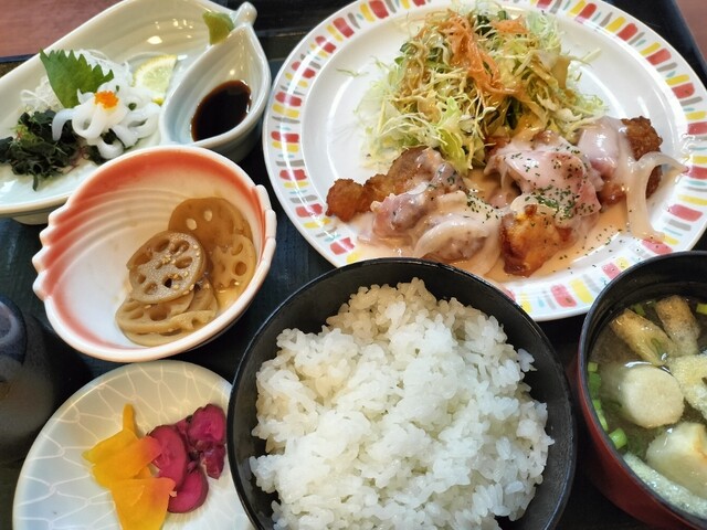 日替わりランチを食べました。本日は鶏むね肉のクリームソースかけとイカそうめんでした。唐揚げは時々食べるけど、それにクリームソースかかっているのは初めて。おいしかったです!ご飯も少しおかわりした。アプリクーポン利用で500円引きになり支払いが500円でお得でした!イオンカード提示でソフトドリンク無料のサービスは8月で終わっていました(T_T)