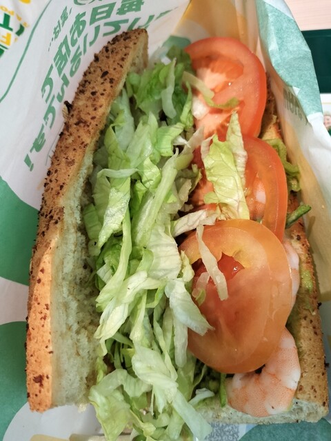 今日のランチはサブウェイにて。日曜日ですが混んではいませんでした。セルフレジでオーダー。エビ卵のサンド570円。おいしかったです。タマネギ抜き、その他野菜多めにした。オリーブ入れました。ポテトはクーポンで無料。