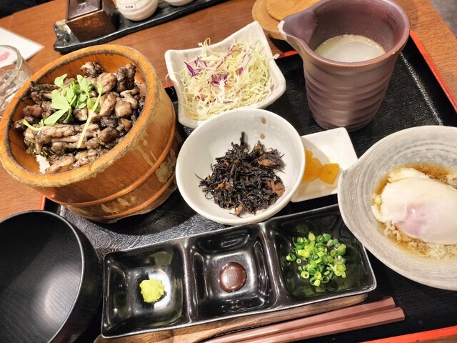 初訪問。前から気になっていたお店。11時に予約しての訪問。ランチメニューの炭焼き鶏のひつまぶし御膳特上1840円.日向夏シャーベット330円を食べました。説明通り、1杯目はそのまま、2杯目は薬味入れて、3杯目は温泉卵入れて、最後は鶏ガラスープと混ぜて食べました、とても美味しかったです。
