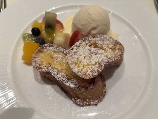 パンケーキ2,400円とフレンチトースト2,600円、アイスコーヒー1,400円を注文