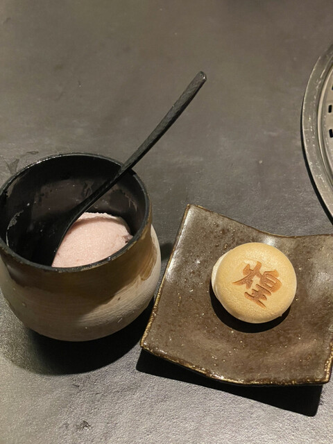 ・自家製フランボワーズのミルクシャーベット 黒胡麻小豆最中