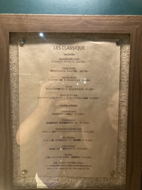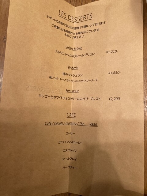 近所でいつも美味しそうと見てたのですが、小学生の子供たちのキャンプ合宿のタイミングで妻と二人遂に念願の来訪。世界3位のパラクルートの他、馬肉モモのキャビア添え、小鳩とフォアグラパイ包の三品に、デザート頂きましたが、どれも衝撃的な美味しさ。特にパラクルートは身構えもありましたが、そのほかの勝るとも劣らない美味さには、驚嘆しました。シャンパンも頂き、お安いとはいえないですが、納得のお味、ボリュームもあり、大満足でした。