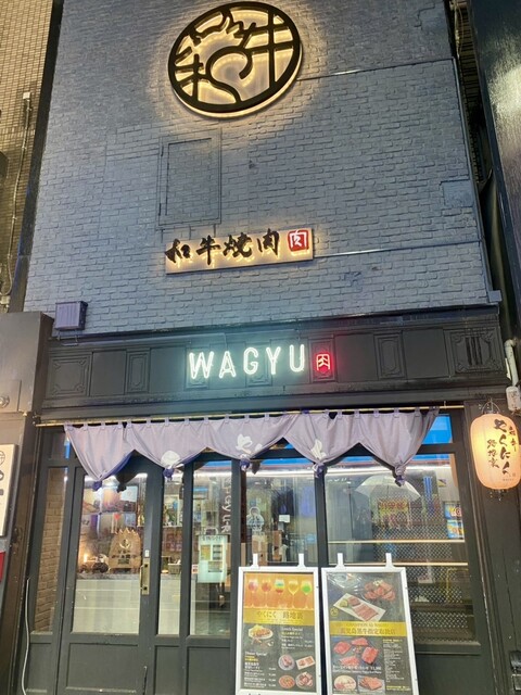 歌舞伎町の雑踏の中に突如現れる『WAGYU』の文字と黒い落ち着いた外観。