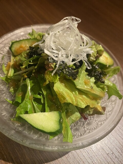 柚子が薫る和風ドレッシングのかかったグリーンサラダ。