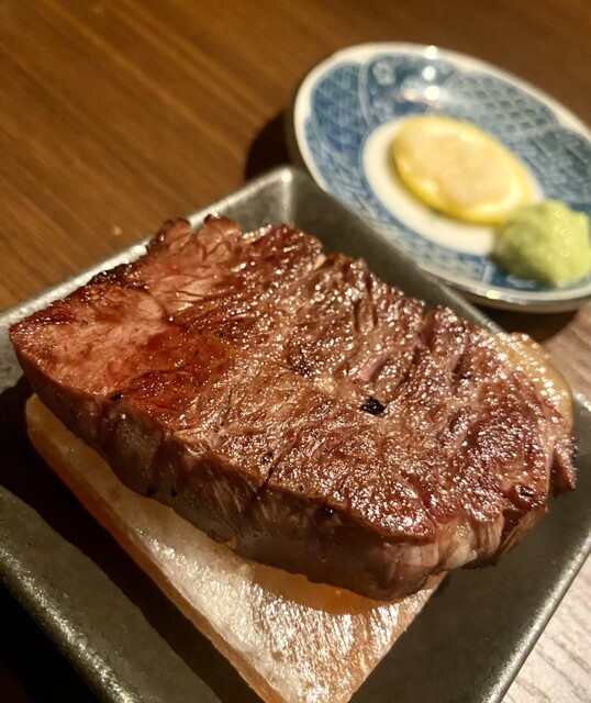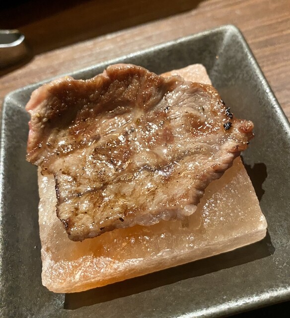 焼いたお肉は岩塩プレートに乗せていただきます。
