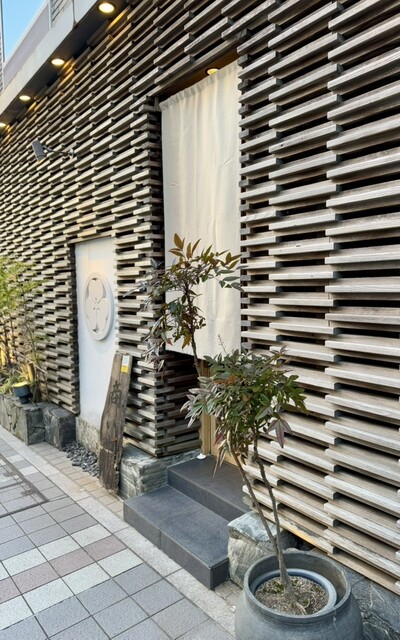 駅前の繁華街に突然、趣のある入口と『商い中』の看板。