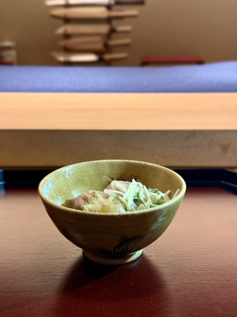 澄んだお出汁はさっぱりとしていながらも深い旨みがあり、ひと口ごとに丁寧な仕込みと手間を感じる優しい味わい。
