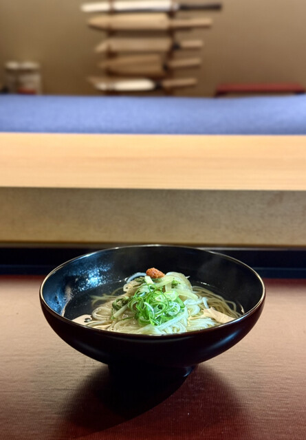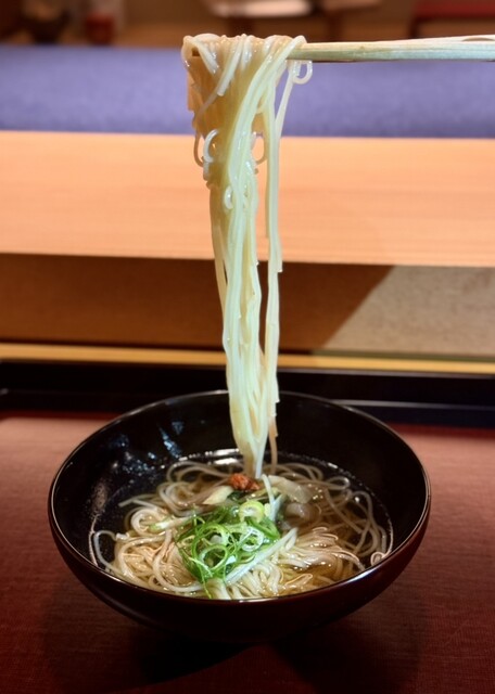 程よい噛みごたえのそうめんと、ネギ・ごぼう・茗荷の爽やかな香りがバランスよく調和し、最後まで飽きのこない一杯。