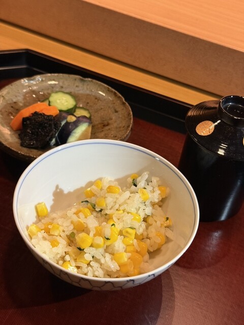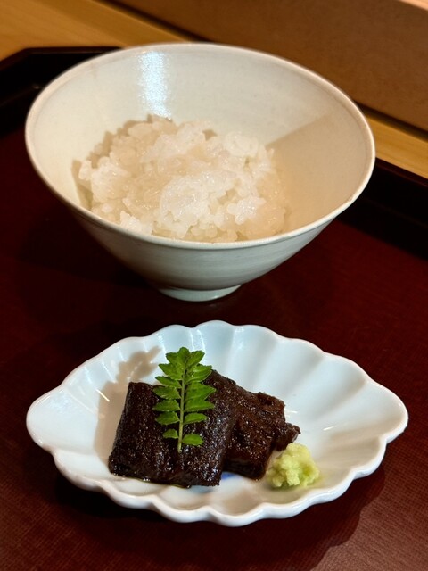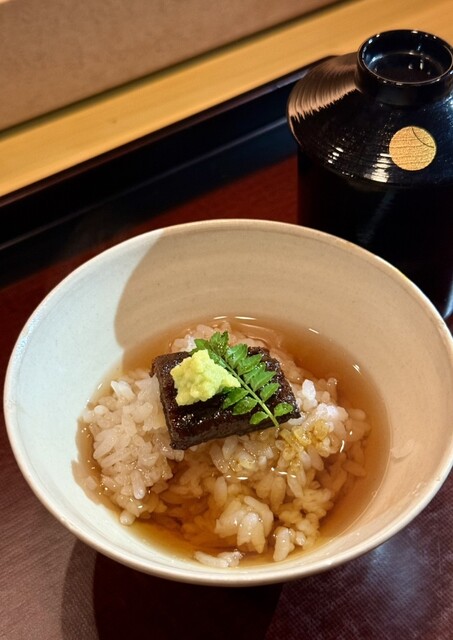 芳ばしい京番茶の香りと、鰻の佃煮の濃厚な旨みが絶妙に調和し、シンプルながら奥深い味わいが心に残る締めご飯。