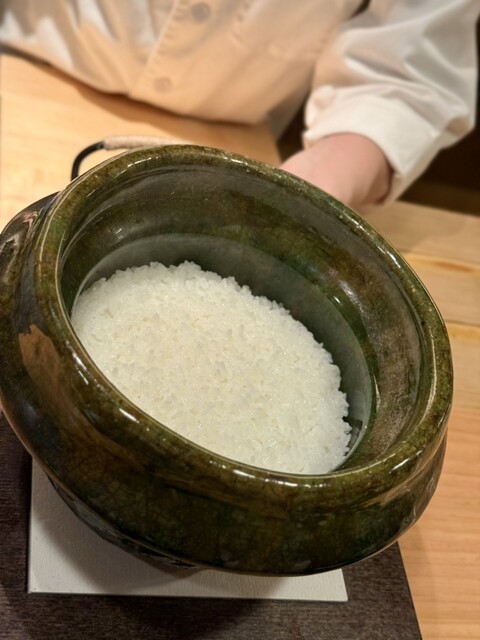 魚沼産コシヒカリを土鍋で丁寧に炊き上げたご飯は、箸を入れた瞬間に感じるふっくらとした弾力が印象的。