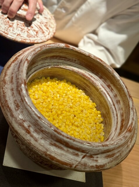 蓋を開けた瞬間、鮮やかな黄色と立ち上るとうもろこしの香りに食欲がそそられる一品。