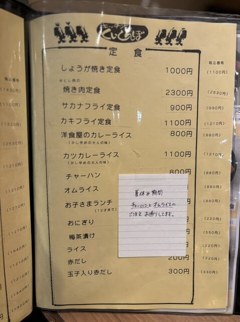 メニューリストには定食メニューも記載されてます。