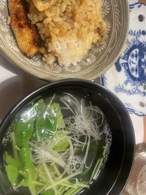 九絵のお刺身❤️白身なのに脂も乗っていて、美味しかった!!!鰻重はその場で焼いて提供していただきました♪ご飯鰻、ご飯鰻の四層でした❤️焼きたてで香ばしく、タレの甘みも相まって、もーご飯が進む進む笑