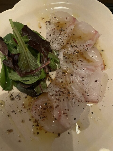 念願のハンバーグは、身体に優しいお味で美味しい❤️おすすめして頂いた大山どりの香草パン粉焼きも優しいお味で美味しい❤️カルパッチョにふりかけられていた岩塩が美味しかったので、今回も頼んだのですが、岩塩がテイクアウト出来るという事でお持ち帰りしました笑