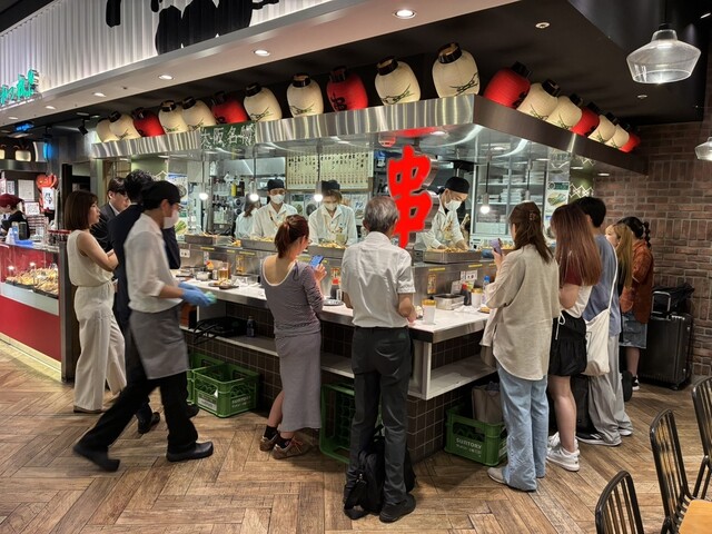 平日16時過ぎお店着で待ちなし。立ち食いのカウンターがメインですが、どんどん席は埋まり、すぐ満席になりました。改札内のお店なので、乗り換えなどの合間にさっと食べる方が多いと思います。回転が早いです。近くにあったら毎日通ってしまいそうなほど、味もお値段も品揃えもナイスなお店です。お土産で持ち帰りができるのも嬉しいです。ぜひまたお邪魔したいです。