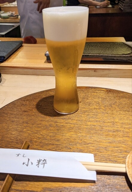 いつものカウンターのいつもの端っこ。落ち着きます。ビール飲んで落ち着いたところで、大将が「実は店を移転します、神楽坂に」とのこと。