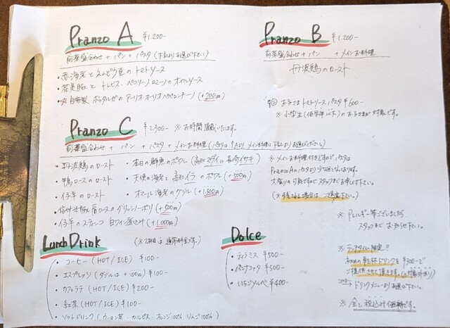 ランチだけど、ディナー用メニューをお願いしたようです。