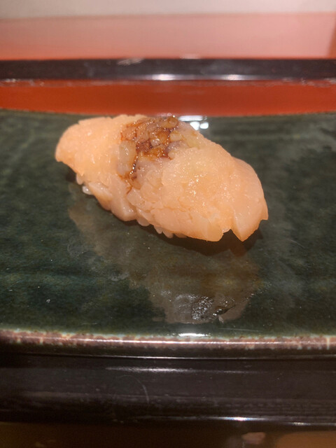 一貫目から白眉。官能的と言うべき甘味と旨味で、ねっとりとした熟成感がある。脂が乗っていながらとても品があり、思わず頬が緩む美味さ。