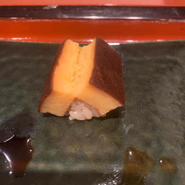 昨今あまり見かけなくなった鞍掛。帆立の擂り身が入っており、甘みと香りのある江戸前の玉子焼き。