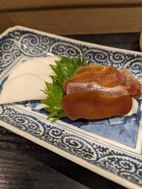 例えば光り物の酢〆(小鰭、新子、鯖など)と芽ネギや紫蘇、胡瓜などの香味野菜をシャリなしの巻物にして頂いたりします 爽やかで美味しく、スタートに丁度良いです