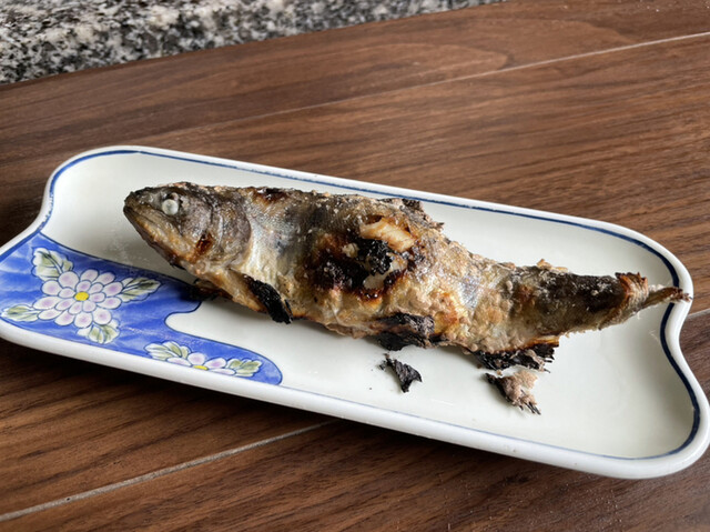 塩焼きは小骨が少し多かったですが、炭火のいい香りとお焦げ、ジューシーな脂が最高でした。