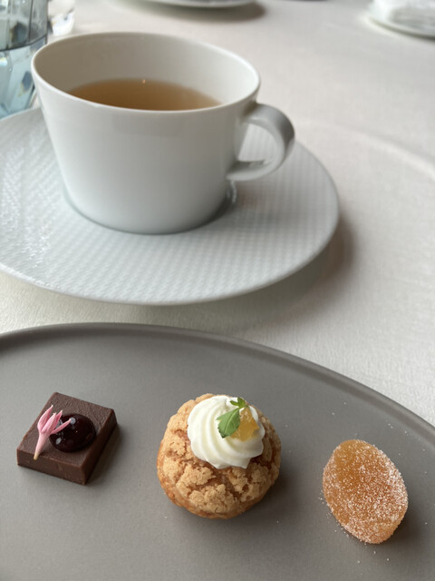 お昼のショートコースで伺いました。マンダリンオリエンタルの37階にあるフレンチ。景色は大手町側で、あいにくの曇り空でしたが、遠くまで見張らせて気持ちが良いです。サービスも過不足なく、さっぱりとしていて、好感度高しでした。