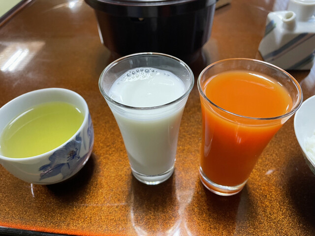 フリードリンクはお茶、牛乳、野菜ジュース、お水がありました〜。