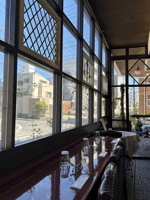 パーテーションのガラス窓も、貴重な一枚ガラスなアンティークの圧巻のワイングラスも沢山♪本当に全てが美しい、ほっとする空間でした!