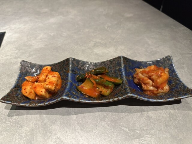 スタートは優しい酸味と甘味が絶妙なキムチから。特にヤマイモのキムチはシャクっとした食感と唐辛子の風味が絶妙で、食欲に火をつけてくれます。