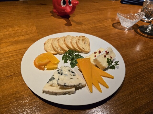 最後の方はお茶やコーヒーをいただいていますが、これは翌朝10時~1階のバーエリアがカフェになるため、そこでいただきました。チーズケーキとあわせて楽しむことができます。