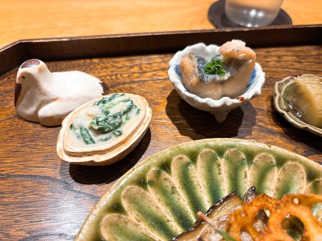 いちじく白味噌でんがく にしんの唐揚げ揚げ浸し かき だいとくじふ すけそうだらのすけこ炊いたもの ぎんぽうの舞茸はさみやき 栗ちゃきん