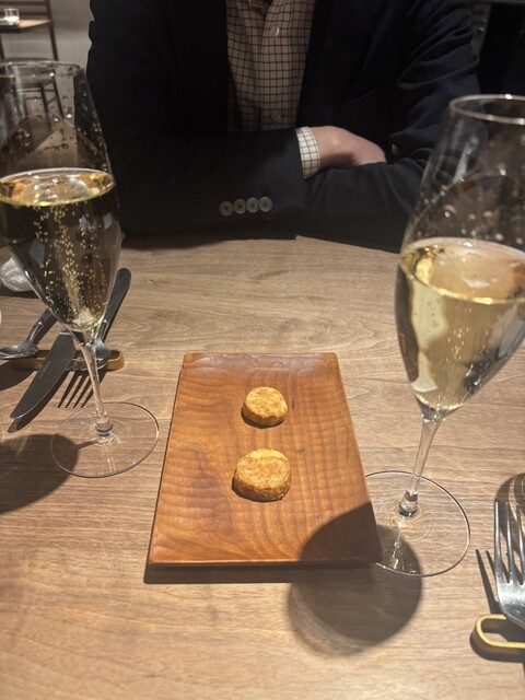 白レバーのムースは、ソーテルヌと合わせたら踊り出しちゃうくらいでしたし、フォアグラのパイ包みはゼリーのところもめっちゃ美味しいパイはサクサクなのに、中のパテのところはしっとり...