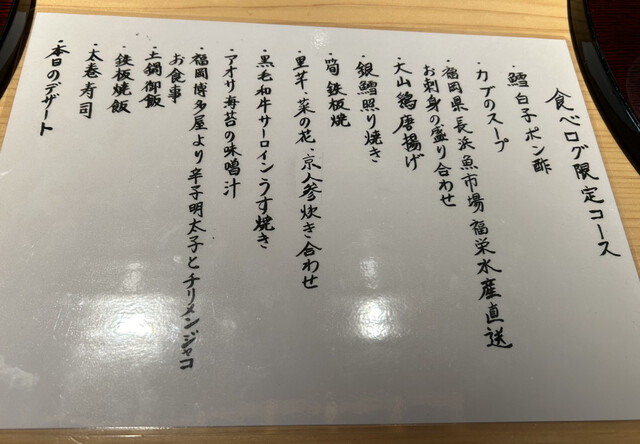 毎月旬の食材を使ったメニューが変わる大好きな青天さんの食べログ限定コース。