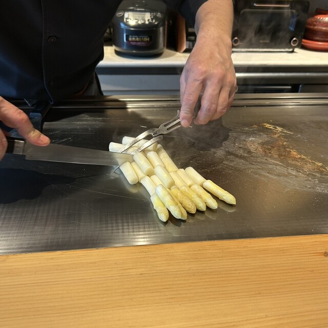 鉄板で焼かれ甘みが増した筍はシンプルな味付けでいただきます。パリッとした食感と中のホクホクした食感どちらも味わえます。噛めば噛むほど筍本来の甘みがあり、春を感じる美味しさ。