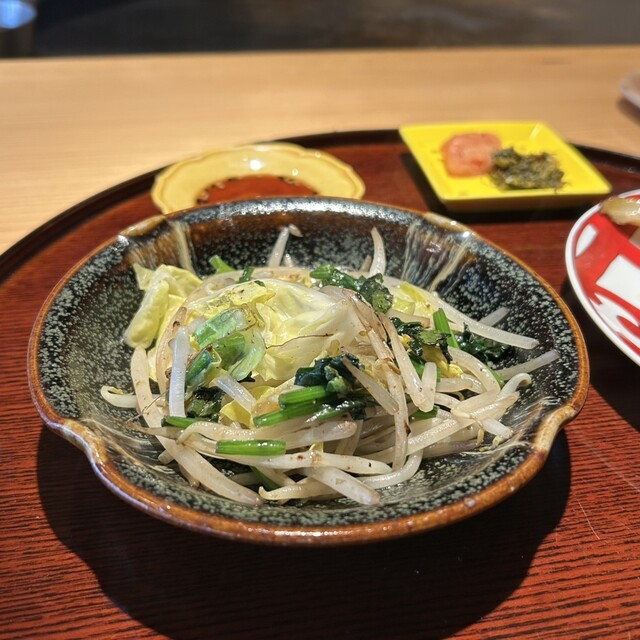 和牛サーロインは、大判のお肉にニンニクスライスとネギを巻いてお塩でいただきます。脂の乗ったサーロインにネギの旨みが合わさりまさに口福。特製タレでいただくとお米が止まらない美味しさでした。