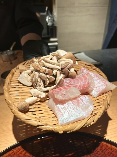 真鯛の鉄板焼きは表面はカリッと、中のフワッフワの身が美味しすぎる!バターが香るキノコも旨みたっぷりで相性抜群。