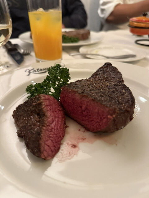 前菜盛り合わせから綺麗でとっても美味しくてステーキへの期待が高まりました。特にカボチャのスープがお気に入りです!いよいよメインのステーキに入る時、大きなブロックのお肉を店に来てくれてどの部位がいいかを選ばせてもらえるのも素敵でした!まさか見せに来てくれたあのサイズのままのステーキが来るとは思わずびっくり!!!