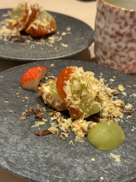 デザートがまた凝っていて、あんことマスカルポーネチーズを巻いたものが絶妙に口の中で混ぜ合わり最強のコンビネーションになる。
