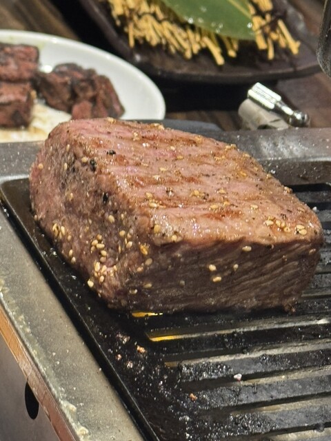 厚切り上タンのやわらかさに衝撃!タンでこのやわらかさは驚いた。このコースは、スタッフさんが焼いてくれるのも嬉しいサービス。厚切り上ハラミ、ササミカルビの焼き加減も最高。味がついているので。わさびで頂いた。上質な脂がとろけて美味しい。
