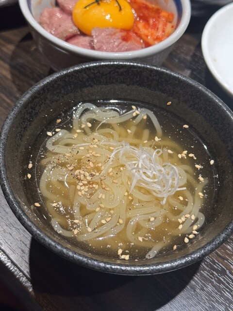 特上ロースを、お肉だけ卵黄につけて、お米を巻いて、丼にしてと楽しむ。冷麺が、ちょうどいいサイズで、このスープがめっちゃ美味しいので飲み干した。