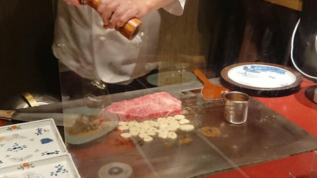 目の前には鉄板、そして専任の料理人の方が付いてくれ、最初から最後まで一皿ずつ丁寧に仕上げてくれます。そして、会話も楽しい。