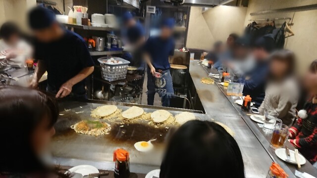 中に入れば、目の前で次々と焼き上げられていくお好み焼き。このライブ感だけでワクワクします。